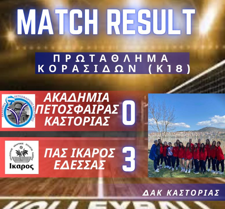 Αξίζει να σημειωθεί ότι οι Κορασίδες (Κ18) της ομάδας βόλεϊ ΠΑΣ ΙΚΑΡΟΣ ΕΔΕΣΣΑΣ παραμένουν στην 2η θέση του πρωταθλήματος.