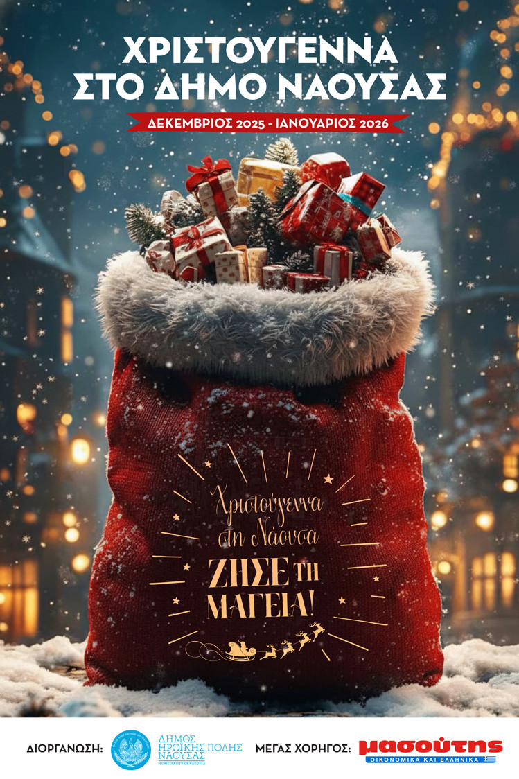 Ο Δήμος Νάουσας φορά τα γιορτινά του, σας υποδέχεται με την πιο ζεστή του διάθεση και μετατρέπει τις φετινές γιορτές σε μια αξέχαστη εμπειρία χαράς, φωτός και αισιοδοξίας.