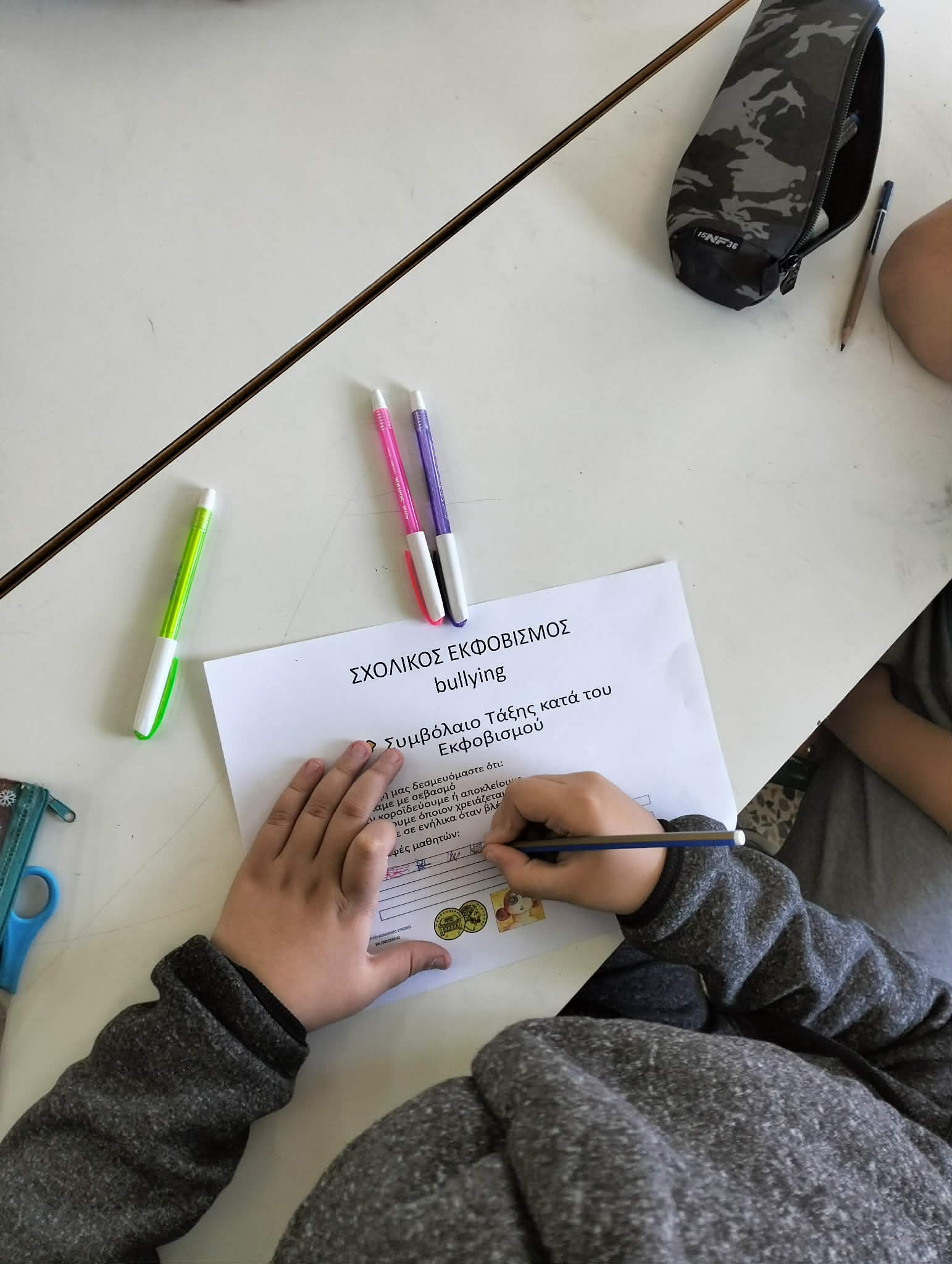 Η δράση ολοκληρώθηκε με τη δημιουργία ενός συμβολικού «Συμβολαίου Τάξης κατά του Εκφοβισμού», το οποίο οι μαθητές και οι μαθήτριες αποδέχθηκαν και υπέγραψαν, δεσμευόμενοι να συμβάλλουν σε ένα σχολικό περιβάλλον που βασίζεται στον σεβασμό, τη συνεργασία και τη φιλία.