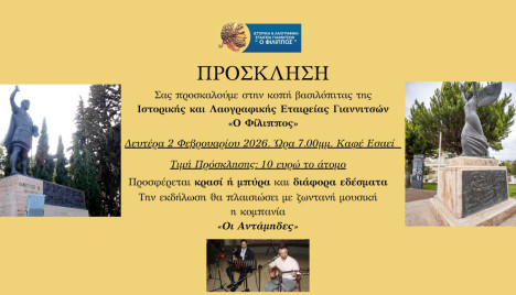 Κοπή βασιλόπιτας της Ιστορικής Λαογραφικής Εταιρείας Γιαννιτσών ο ΦΙΛΙΠΠΟΣ