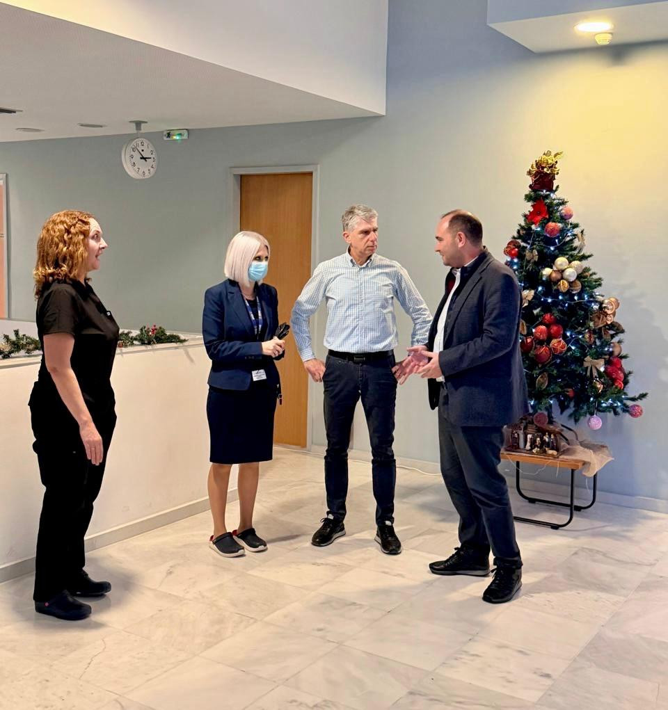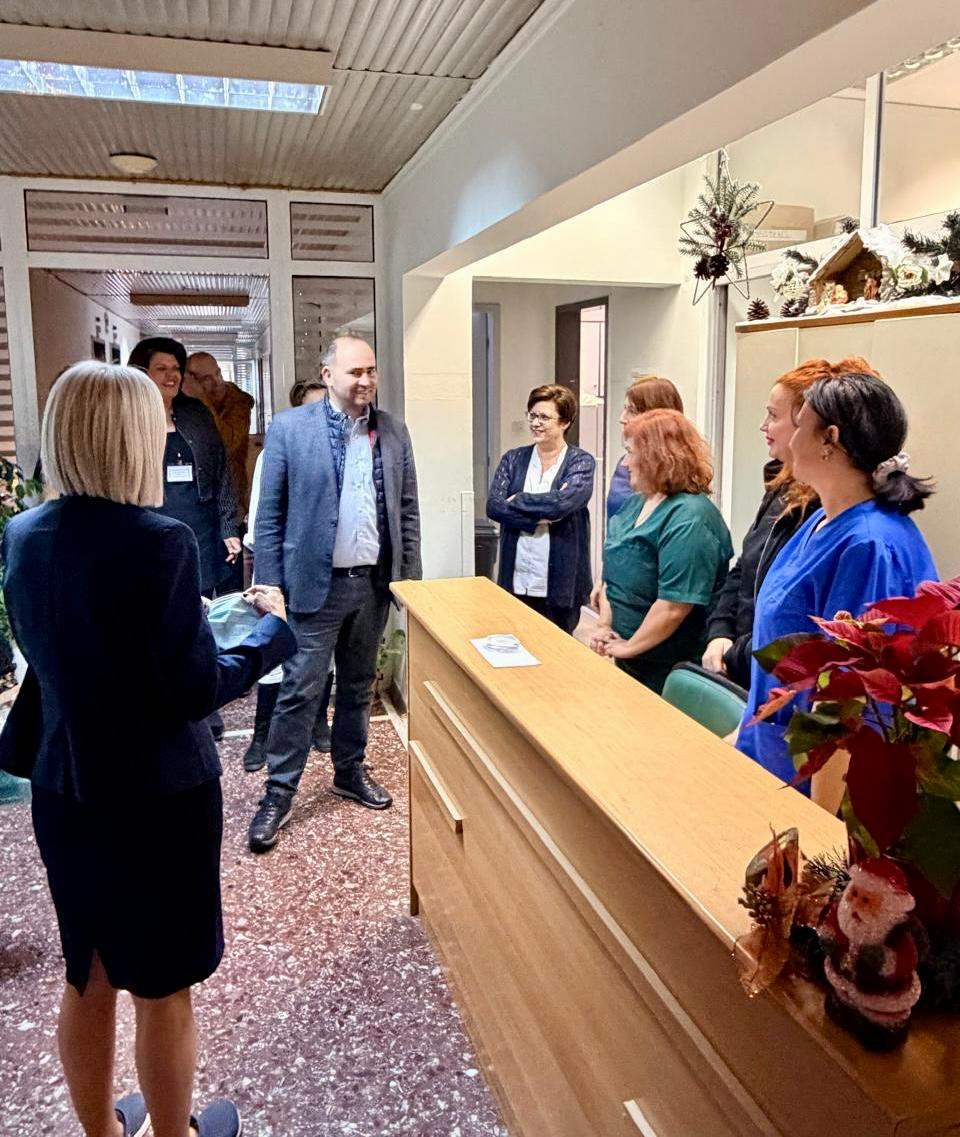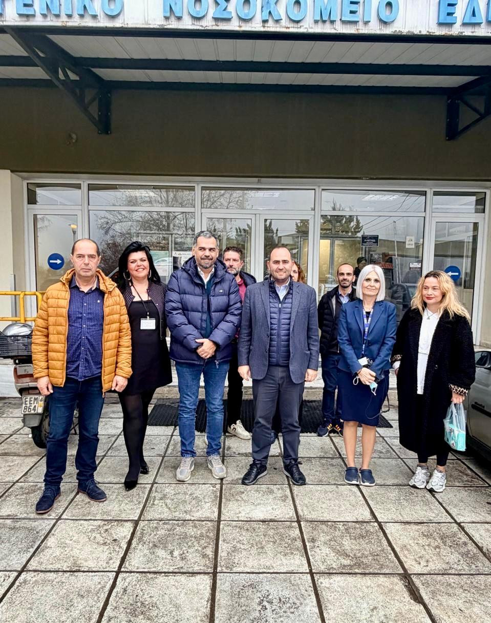 Στο Νοσοκομείο Έδεσσας, επισκέφτηκε όλες τις κλινικές. Συνάντησε τον Διοικητή και τη διευθύντρια της ιατρικής υπηρεσίας, τη Διευθύνουσα νοσηλευτικής, την πρόεδρο και τα μέλη του σωματείου εργαζομένων, το ιατρικό και παραϊατρικό προσωπικό, νοσηλευτές και το διοικητικό προσωπικό. Ανταλλάξανε ευχές και ο βουλευτής ευχήθηκε ταχεία ανάρρωση στους νοσηλευόμενους.