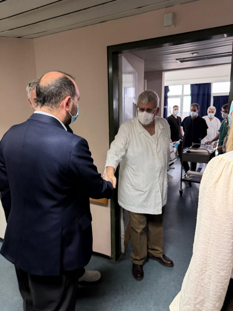 Μεταξύ άλλων ο Βουλευτής Πέλλας επισκέφτηκε και κλινικές, όπου συνομίλησε με γιατρούς, νοσηλευτές, παραϊατρικό προσωπικό και εργαζόμενους.