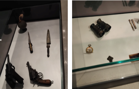 Στον πρώτο όροφο, εντυπωσιάστηκαν βλέποντας αυθεντικά πολεμικά αντικείμενα, την πλάβα (βάρκα) που χρησιμοποιούσαν οι Μακεδονομάχοι στα νερά των Γιαννιτσών, καθώς και τον ντουλαμά, την αυθεντική στολή ενός αγωνιστή. Μέσα από βίντεο και αναπαραστάσεις μαχών, ένιωσαν να ζωντανεύουν μπροστά τους οι στιγμές ηρωισμού και αυτοθυσίας των Μακεδονομάχων.