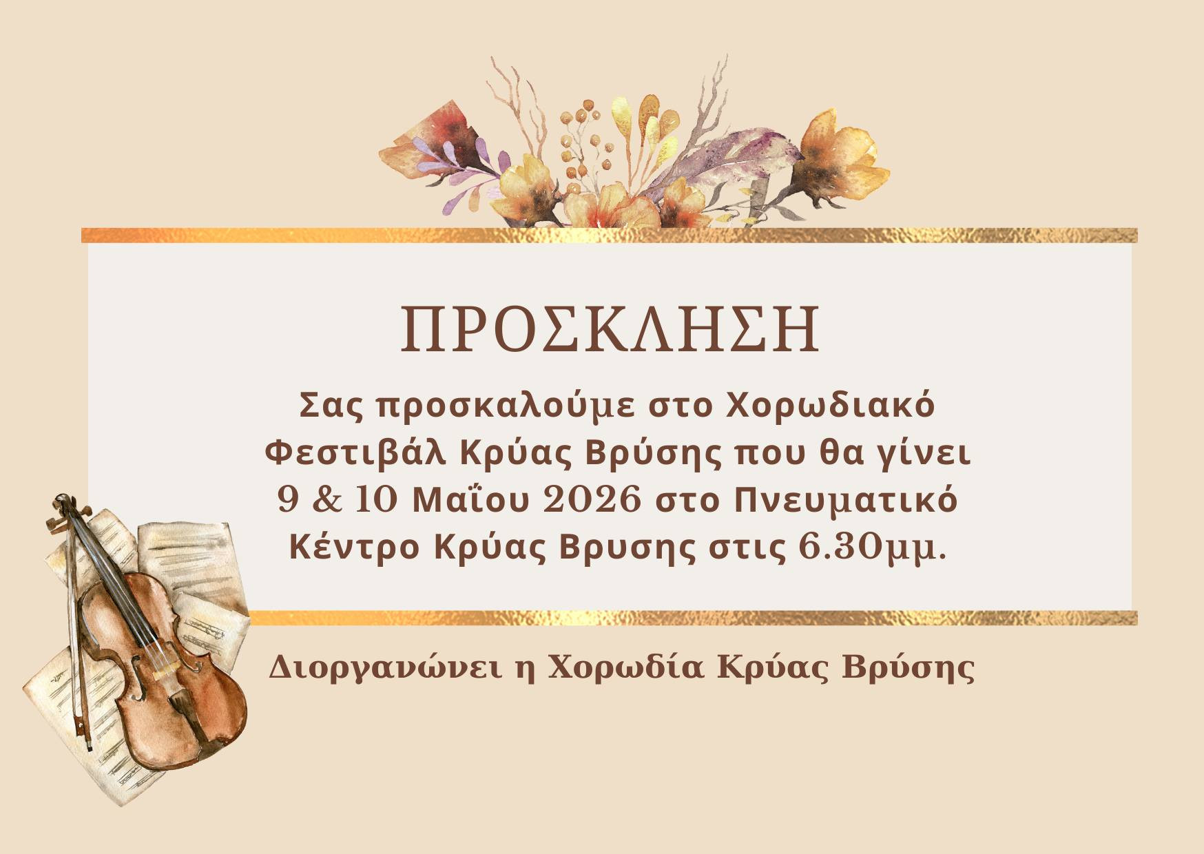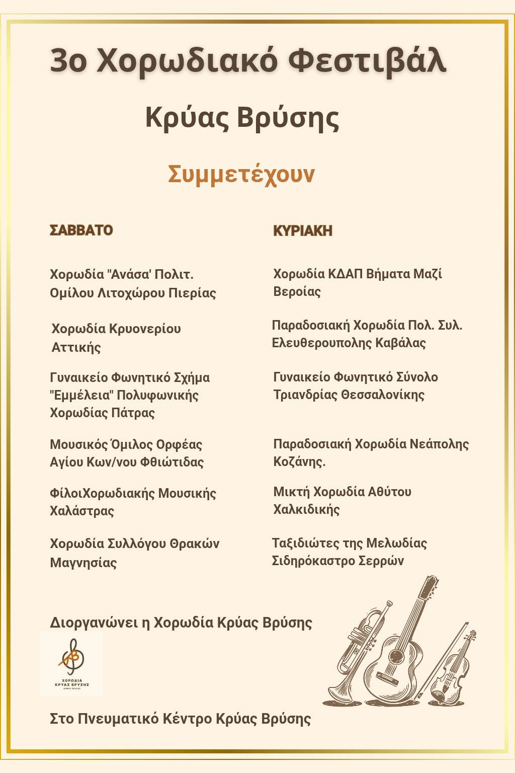 Έρχεται το 3ο Χορωδιακό Φεστιβάλ Κρύας Βρύσης