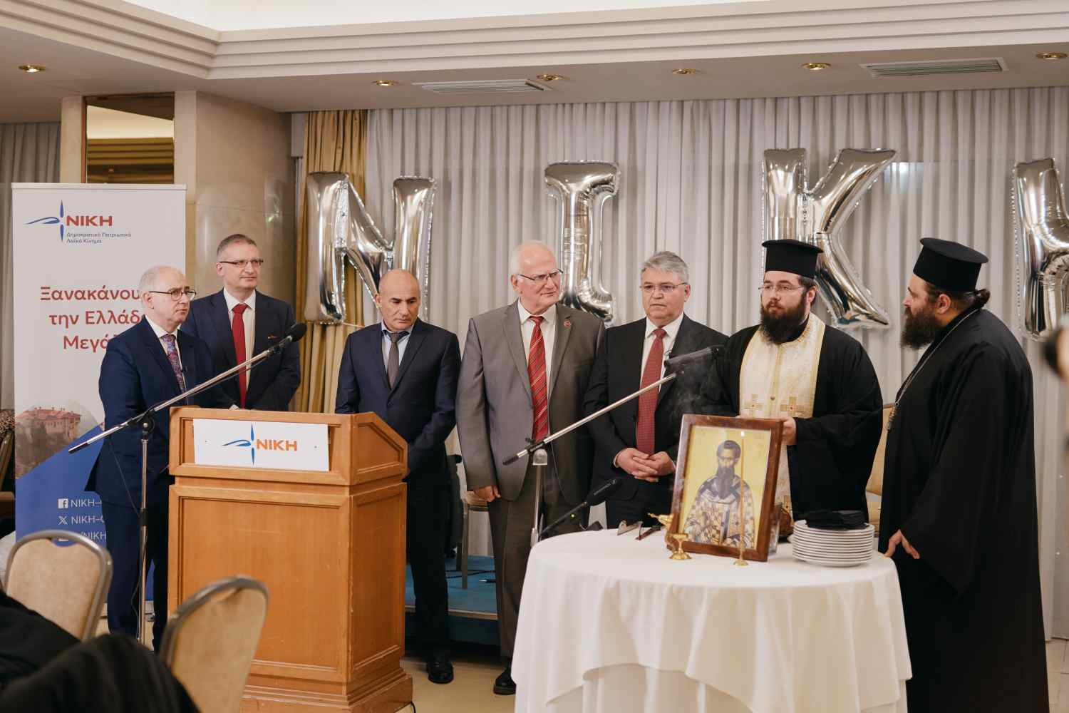 Με μεγάλη επιτυχία πραγματοποιήθηκε στη Θεσσαλονίκη η εκδήλωση κοπής της Αγιοβασιλόπιτας των Τοπικών Κοινοτήτων Α’ και Β’ Θεσσαλονίκης του Κινήματος ΝΙΚΗ, παρουσία του Προέδρου του Κινήματος Δημήτρη Νατσιού, μελών του Βουλευτηρίου, του Βουλευτή Πιερίας, Κομνηνού Δελβερούδη, του Εκπροσώπου Τύπου, Δήμου Θανάσουλα, και πλήθους στελεχών και φίλων της ΝΙΚΗΣ.