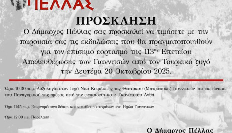 Πρόγραμμα εκδηλώσεων της 113ης Επετείου της Απελευθέρωσης των Γιαννιτσών
