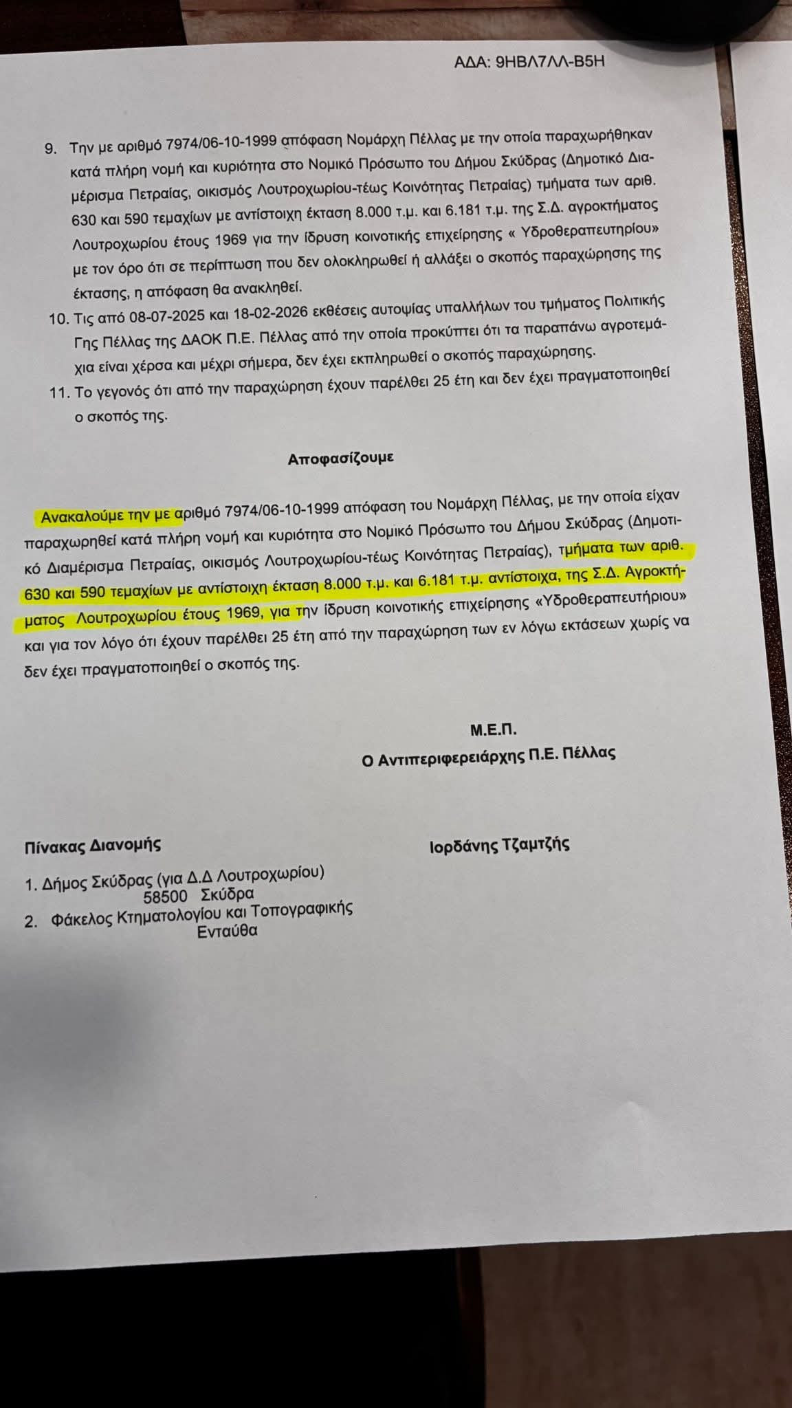 Η απόφαση παραχώρησης του 1999 (7974/06-10-1999) ανακλήθηκε ΧΘΕΣ,