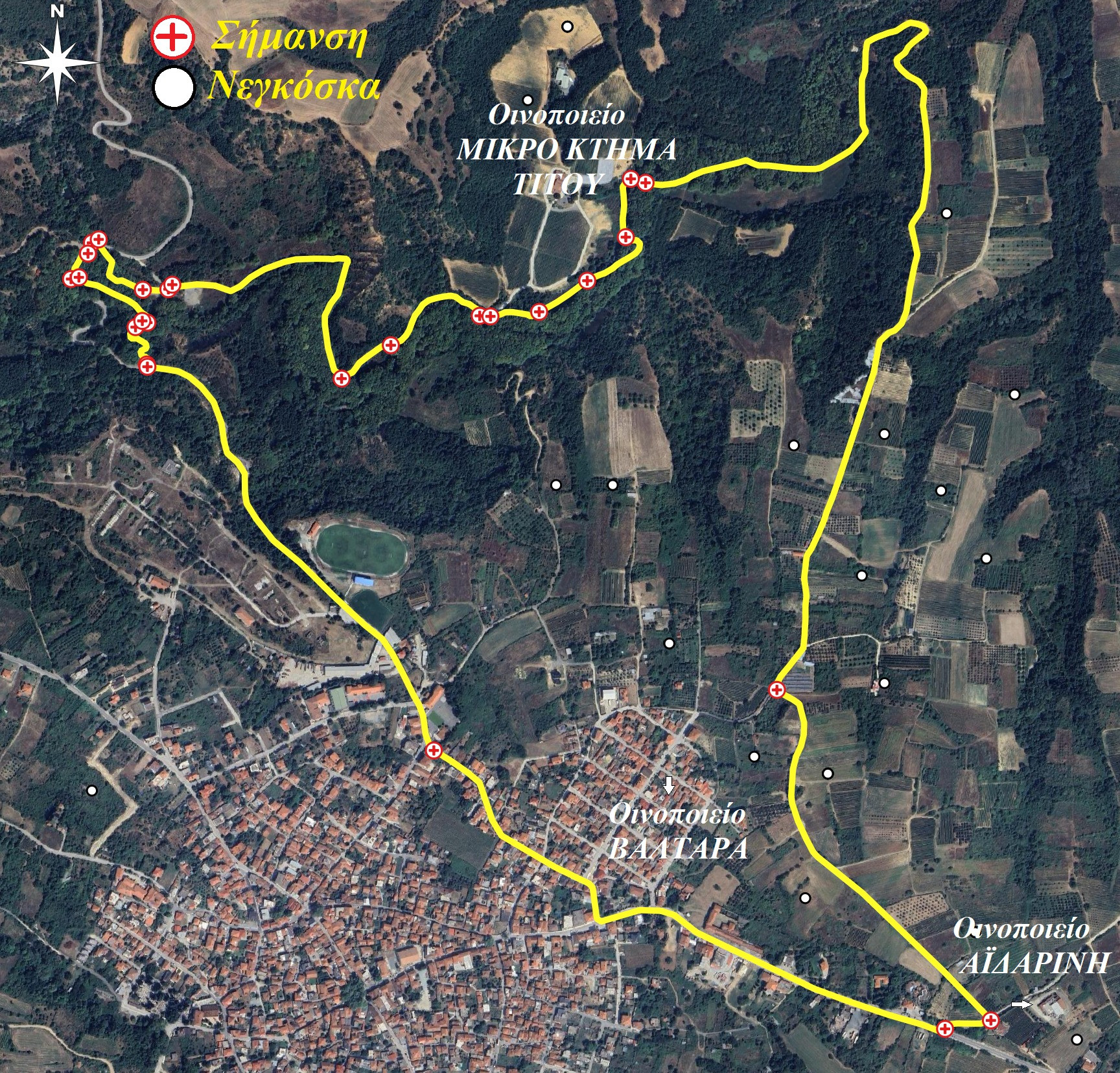 Το μοναδικό «ταμπεραμέντο» της ποικιλίας ερυθρού σταφυλιού Νεγκόσκα «πρωταγωνιστεί στο φερώνυμο πεζοπορικό μονοπάτι στη Γουμένισσα, το οποίο, πλέον, έπειτα από τη σύμπραξη του Γραφείου Τουρισμού της Περιφερειακής Ενότητας Κιλκίς με τον Ορειβατικό Σύλλογο Περιηγητών Γουμένισσας (Ο.Σ.ΠΕ.Γ.) και τη στήριξη του Δασαρχείου Γουμένισσας, έχει σηματοδοτημένη κυκλική διαδρομή μήκους 6,5 χιλιομέτρων, η οποία ‘’συνδέει’’ το κέντρο της μακεδονικής κωμόπολης με την τοποθεσία Δύο Ποτάμια και οινοποιεία που βρίσκονται κοντά σ’ αυτήν.