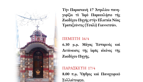 Γιαννιτσά: Πανηγυρίζει το Παρεκκλήσι της Ζωοδόχου Πηγής