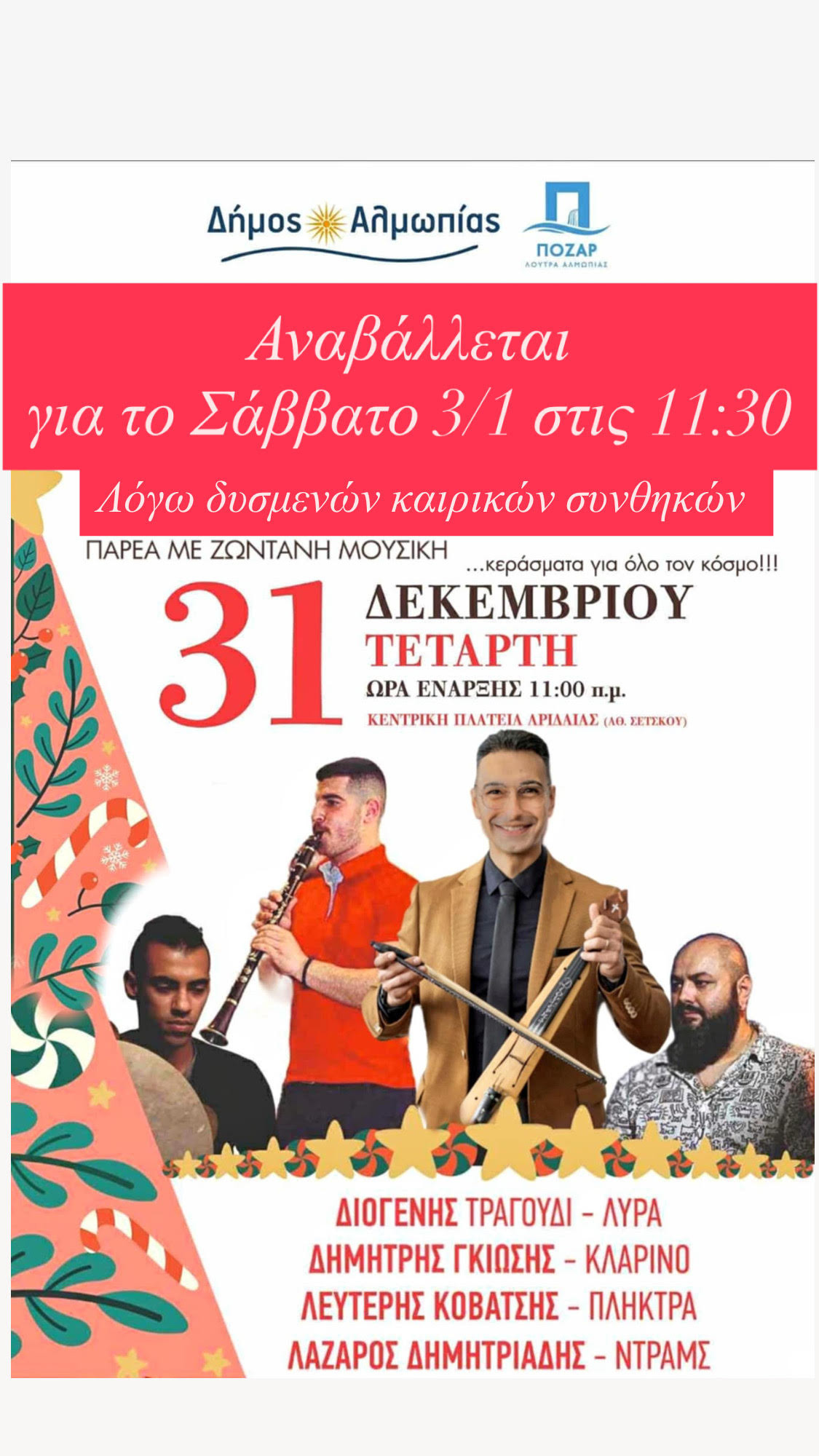 Μουσική εκδήλωση στην Αριδαία το Σάββατο το μεσημέρι