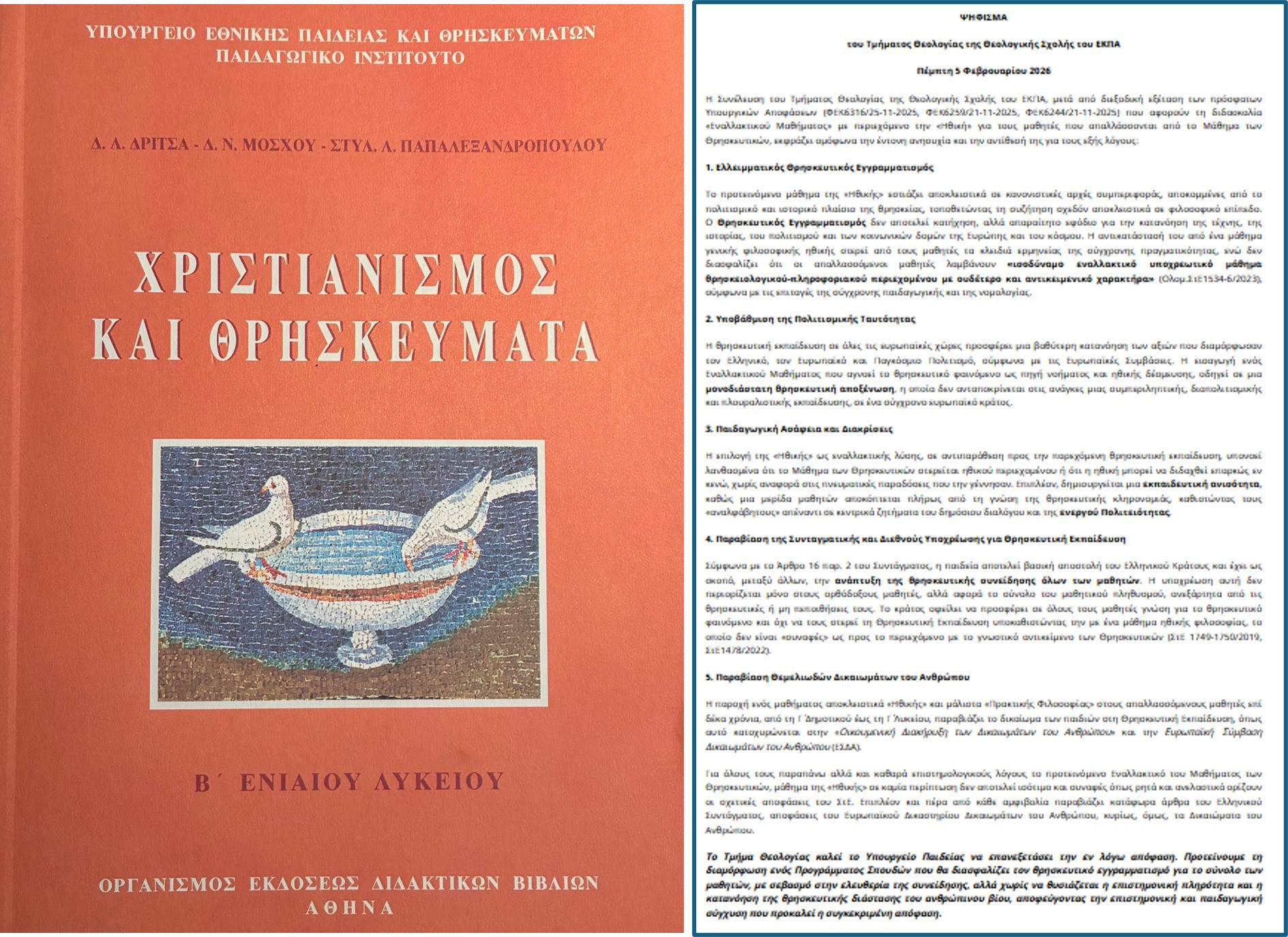 Χαιρετίζουμε την ανακοίνωση του Τμήματος Θεολογίας του ΕΚΠΑ και καλούμε το Υπουργείο Παιδείας να επανεξετάσει την εν λόγω απόφαση.