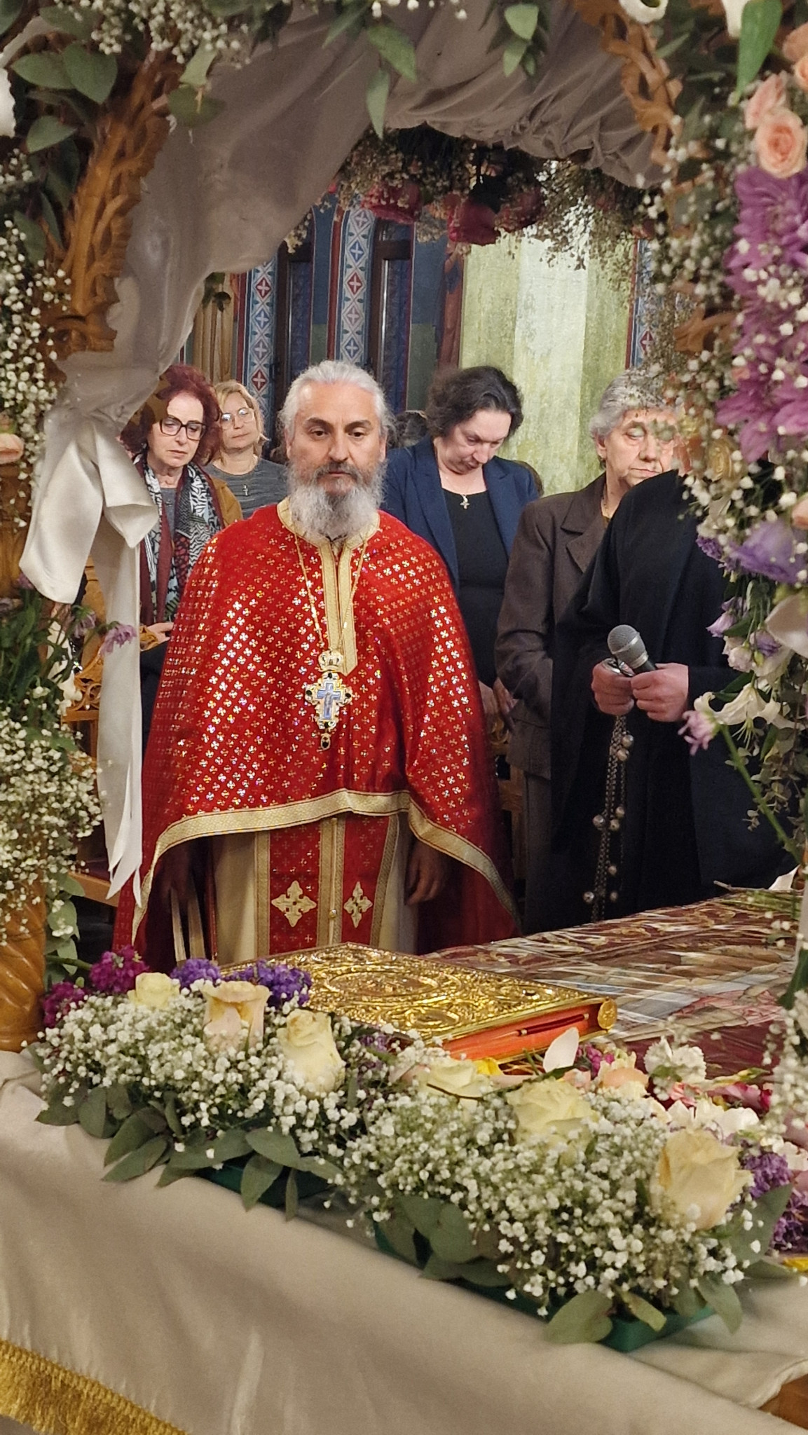 Ο Θεοφιλέστατος έψαλλε με συγκίνηση τα Εγκώμια του Επιταφίου, πλαισιωμένος από τον Πρωτοπρεσβύτερο π. Στέφανο, τον διάκονο Ιωάννη, καθώς και από τους ιεροψάλτες του Ναού, με τους πρωτοψάλτες Βαγγέλη Τομά και Απόστολη Χατζηγρηγορίου. Η ατμόσφαιρα ήταν ιδιαίτερα κατανυκτική, με το εκκλησίασμα να συμμετέχει με ευλάβεια, τιμώντας την Ταφή του Κυρίου.