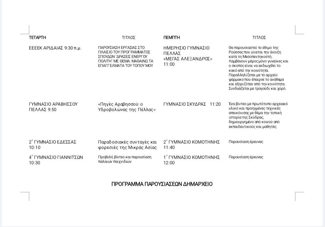 Ο Δήμος Έδεσσας εκφράζει τις θερμές του ευχαριστίες στη Διεύθυνση Δευτεροβάθμιας Εκπαίδευσης Πέλλας για την άψογη διοργάνωση, καθώς και σε όλους τους συνδιοργανωτές και συνεργαζόμενους φορείς.