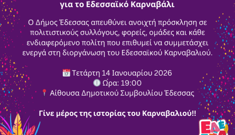 Πρόσκληση Συμμετοχής σε συνάντηση για το Εδεσσαϊκό Καρναβάλι