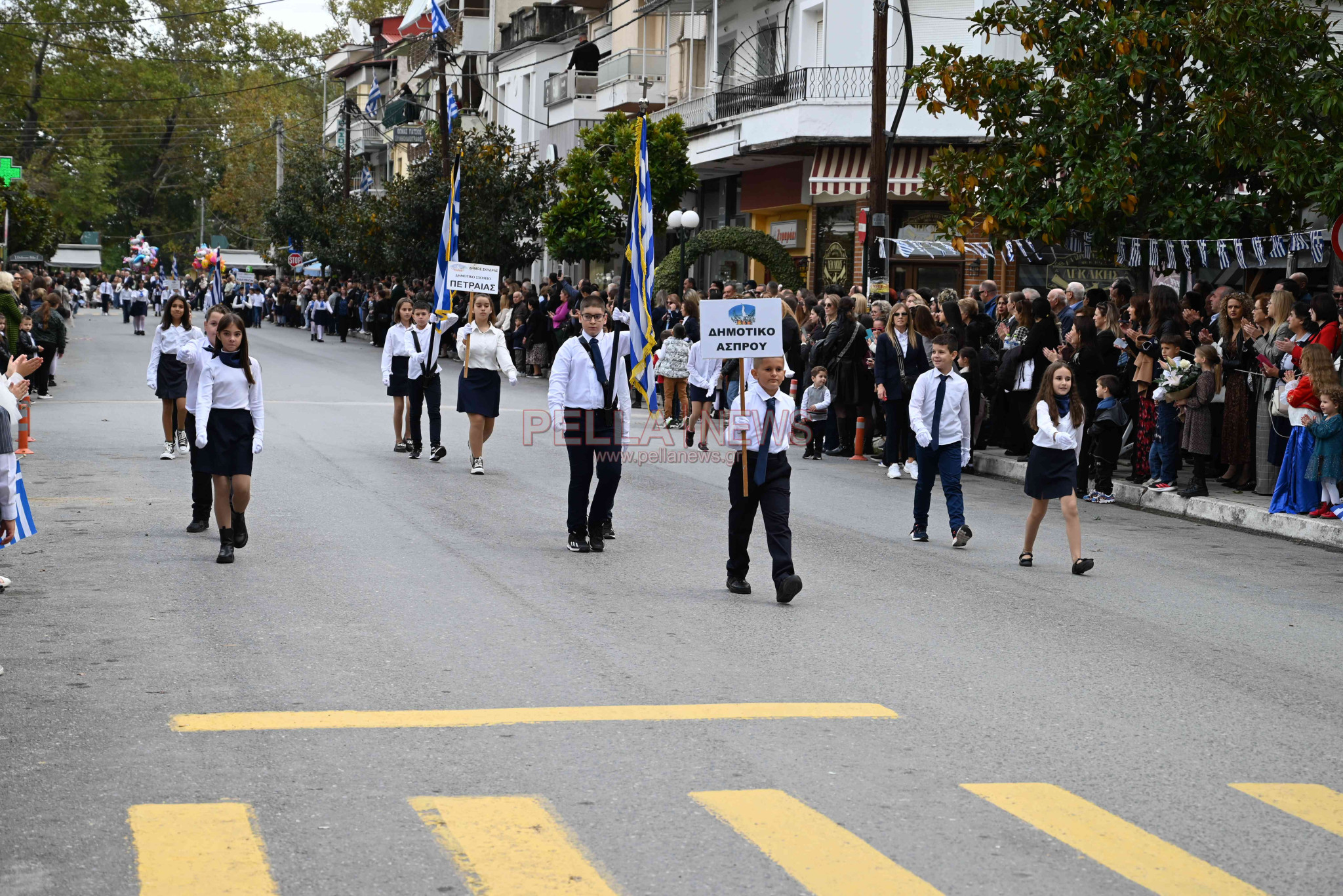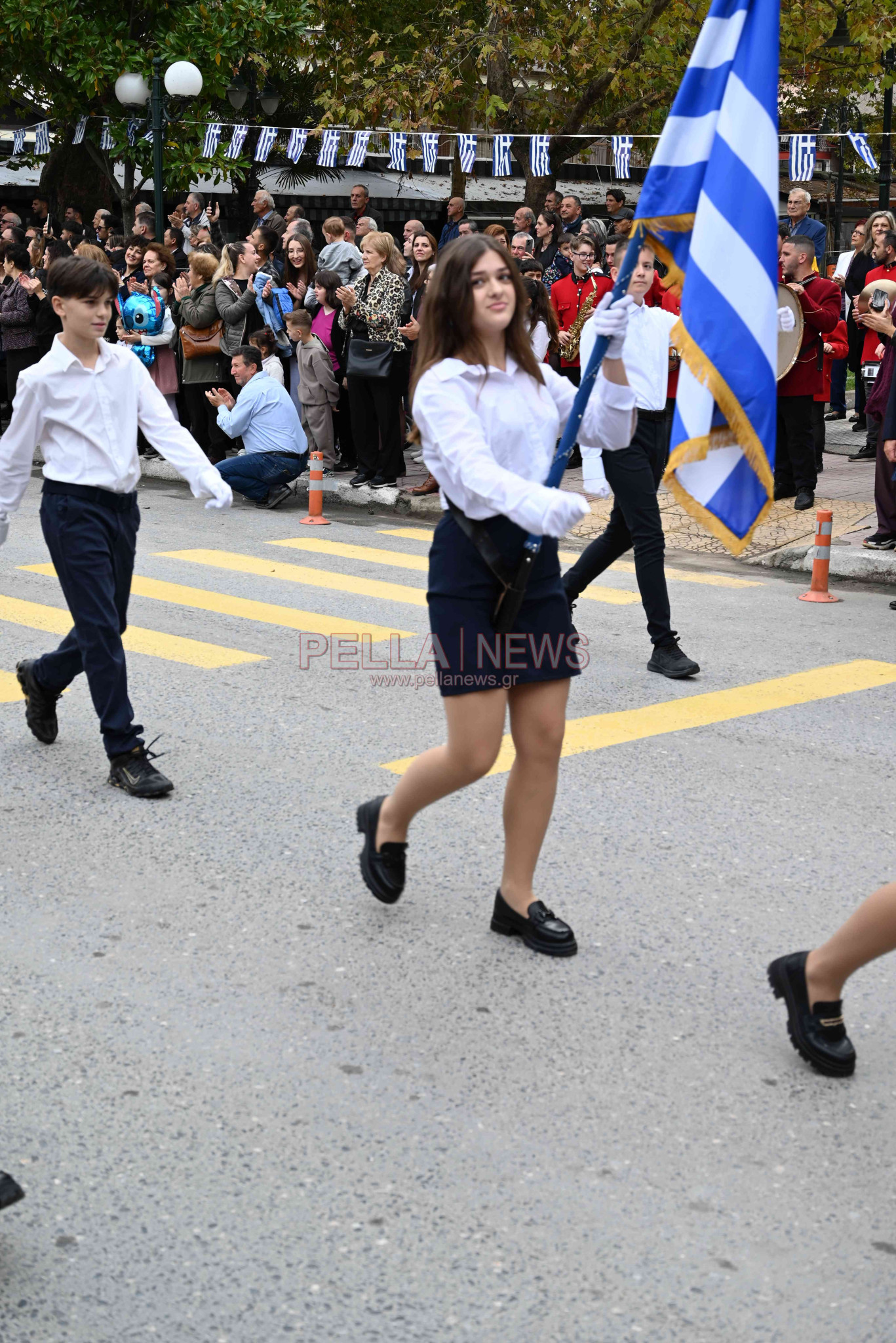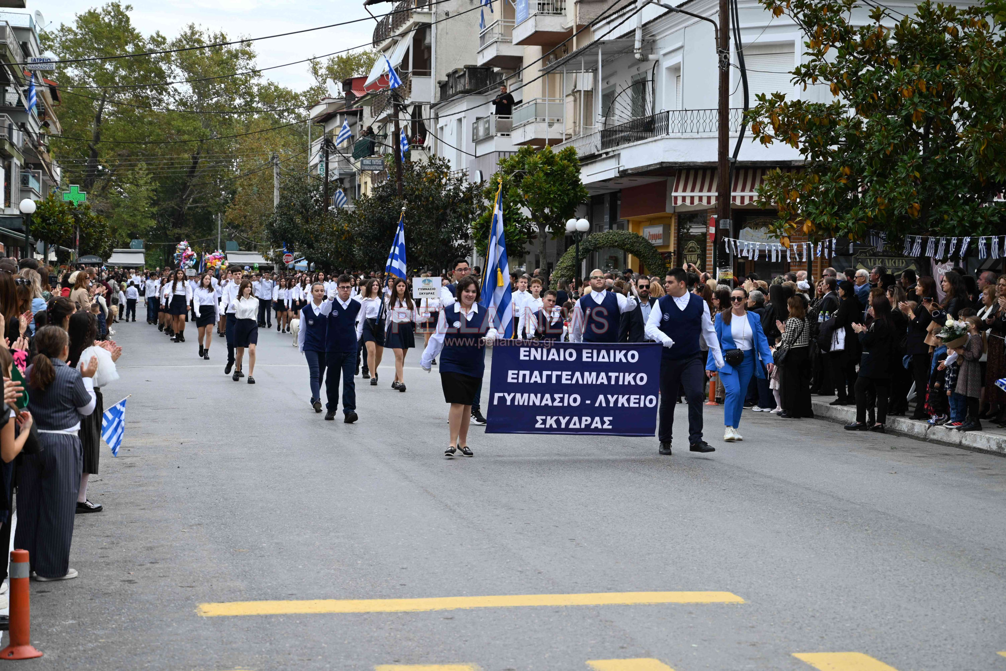Αυτή την ημέρα τίμησε και ο κόσμος του Δήμου Σκύδρας με την κεντρική παρέλαση στην οδό της Εθνικής Αντιστάσεως από περήφανους μαθητές και μαθήτριες και μέλη συλλόγων.