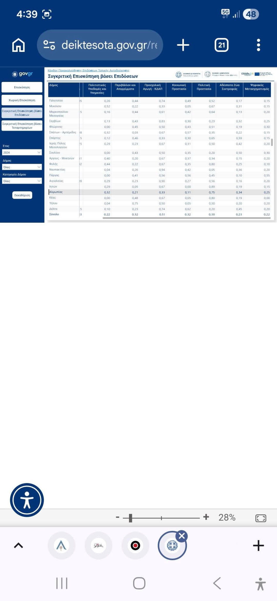 Ανοδική δυναμική καταγράφει ο Δήμος Αλμωπίας, σύμφωνα με τα αποτελέσματα πρόσφατης πανελλαδικής έρευνας για το 2024, τα οποία δημοσιεύθηκαν στην επίσημη πλατφόρμα δεικτών τοπικής αυτοδιοίκησης. Η αξιολόγηση αφορά το σύνολο των Δήμων της χώρας και εξετάζει κρίσιμους τομείς λειτουργίας, όπως η οικονομική διαχείριση, η πολιτική προστασία, η διαχείριση απορριμμάτων, η προσχολική αγωγή, ο πολιτισμός και ο ψηφιακός μετασχηματισμός.