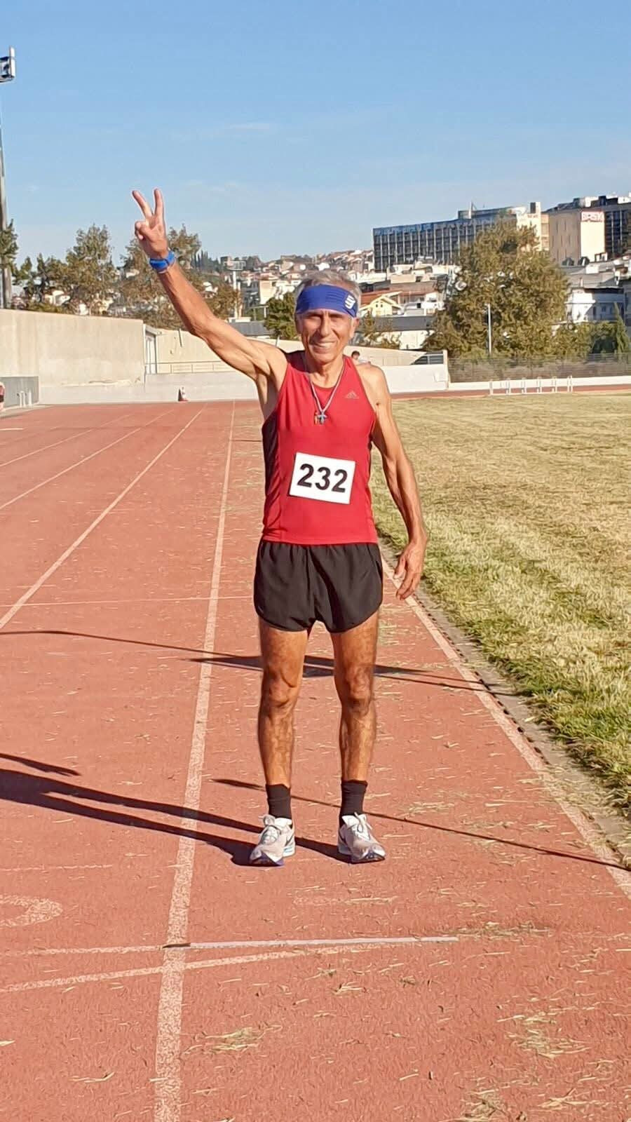 > «Ημερίδα στίβου του ΣΕΒΑΣ Θεσσαλονίκης στο βοηθητικό στάδιο 🏟️ Στις 9:00 τα 5km και στις 11:00 τα 1500m με δύο πανελλήνια ηλικιακά ρεκόρ 🏅🔝 Συγχαρητήρια στους διοργανωτές 🏃🏻♂️ Ευχαριστώ τον προπονητή μου Χρήστο Χατζηβασιλείου 🧢. Οι σημερινοί αγώνες ήταν η πρόβα για το παγκόσμιο της Νότιας Κορέας το 2026 🎯🏆».