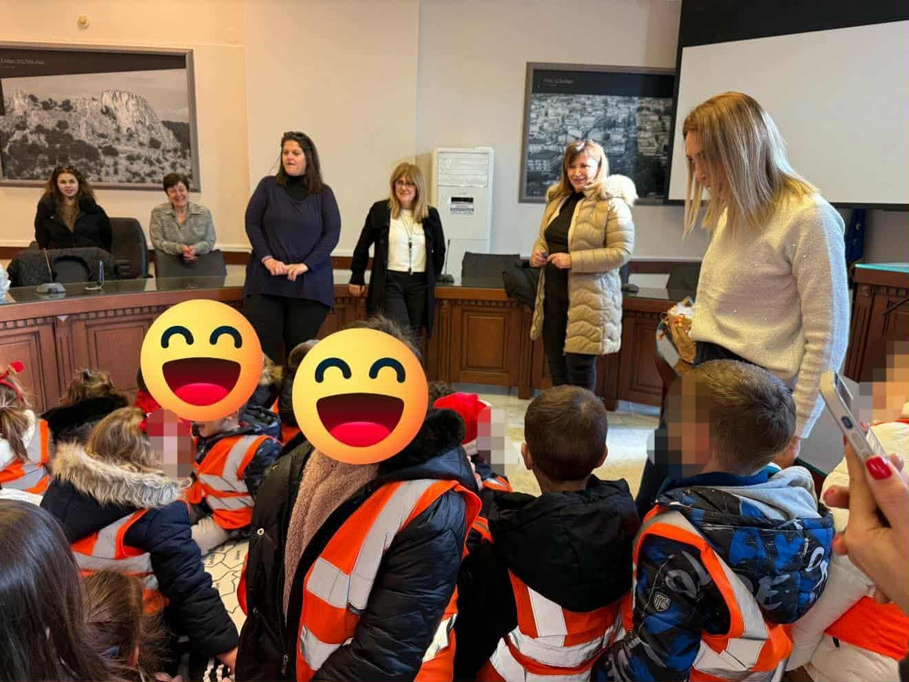 Εκεί, μας υποδέχθηκε με θέρμη η Δήμαρχος Σκύδρας, προσφέροντας στα παιδιά μια ιδιαίτερα ζεστή φιλοξενία. Οι μικροί μας μαθητές, γεμάτοι ενθουσιασμό, τραγούδησαν τα κάλαντα των Χριστουγέννων και της Πρωτοχρονιάς, πλημμυρίζοντας το Δημαρχείο με μελωδίες και παιδικά χαμόγελα. Αφού ανταλλάξαμε εγκάρδιες ευχές για το νέο έτος και λάβαμε γλυκά κεράσματα, επιστρέψαμε στο νηπιαγωγείο μας γεμάτοι χαρά και ικανοποίηση για τη συμμετοχή μας σε αυτή την πράξη αγάπης και προσφοράς.