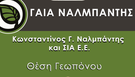 Η εταιρεία ΚΩΝΣΤΑΝΤΙΝΟΣ Γ. ΝΑΛΜΠΑΝΤΗΣ ΚΑΙ ΣΙΑ Ε.Ε. αναζητά Γεωπόνο ΠΕ