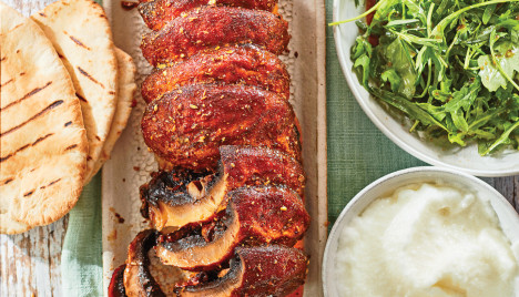 Σουβλάκι µανιταριών shawarma με σκορδάτη σάλτσα