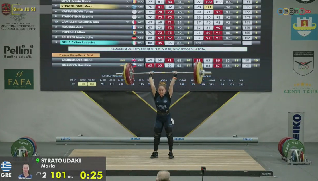 Νέα τρομερή εμφάνιση από την Μαρία Στρατουδάκη που κατέκτησε δύο ασημένια και ένα χάλκινο μετάλλιο στο Ευρωπαϊκό Πρωτάθλημα Νέων-Νεανίδων και U23 της Αλβανίας.