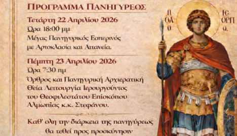 Πανηγυρικές εκδηλώσεις για τον Άγιο Γεώργιο στα Τσακώνια Αλμωπίας